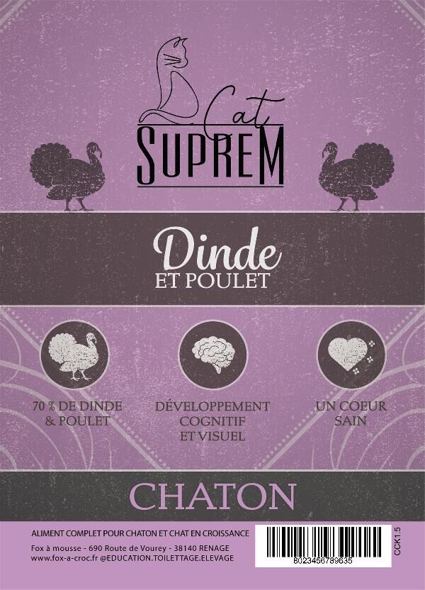 70 % Dinde & Poulet (dont 36 % de poulet séché, 30 % de dinde désossée fraîchement préparée, 4 % de graisse de dinde), pommes de terre, pois, pois chiches, lentilles, sauce de foie hydrolysée, supplément d’oméga-3, cellulose, minéraux, Fructooligosaccharides (FOS, 480 mg/kg), Mannanoligosaccharides (MOS, 120 mg/kg), canneberges séchées, extrait de yucca (190 mg/kg)